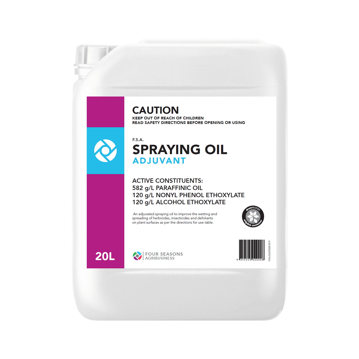 An adjuvated spraying oil to improve the wetting and spreading of herbicides, insecticides and defoliants on plant surfaces as per the directions for use table.